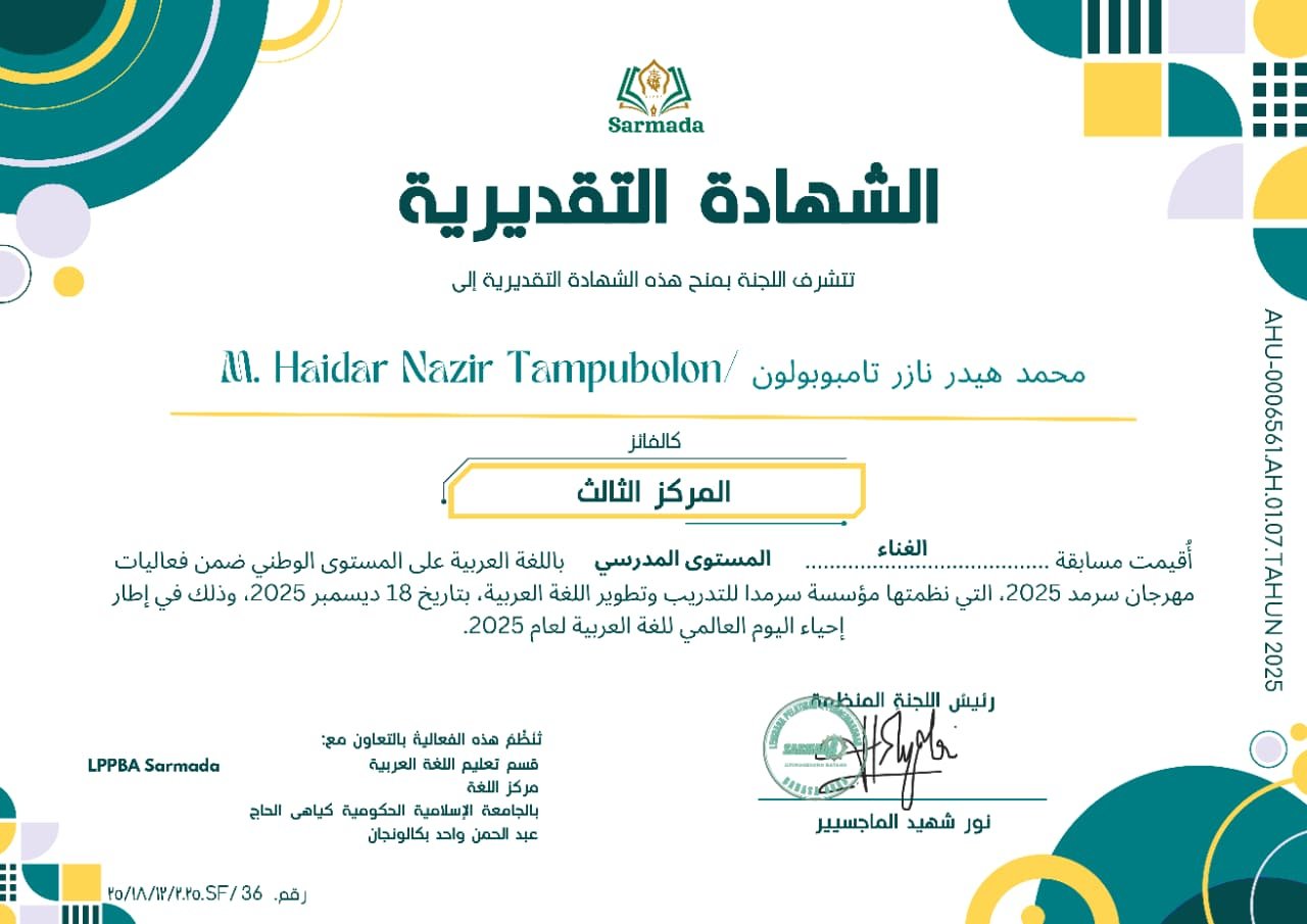 Sarmada Fest 2025 yang diselenggarakan oleh LPPBA Sarmada dengan tema "Bahasa Arab Untuk Semua". Dan kegiatan ini bertepatan dengan Hari Bahasa Arab Internasional pada tanggal 18 Desember yang ditetapkan oleh UNESCO, bertempat di lingkungan LPPBA Sarmada (Secara Daring)
